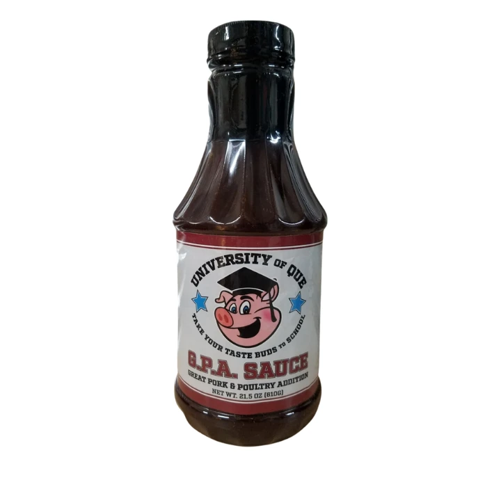 Iedereen streeft naar een HOGE G.P.A., en met de G.P.A. Met de saus van de Universiteit van Que is je eten zeker perfect! G.P.A. Saus heeft zowel op het wedstrijdcircuit als in de achtertuin topscores verdiend en wint steeds weer van de smaakpapillen en wedstrijden met zijn zoete smaak en subtiele hoeveelheid specerijen! Ontworpen als een Great Pork & Poultry Addition, het is geweldig op alles…. En dan bedoelen we ook nog eens alles!