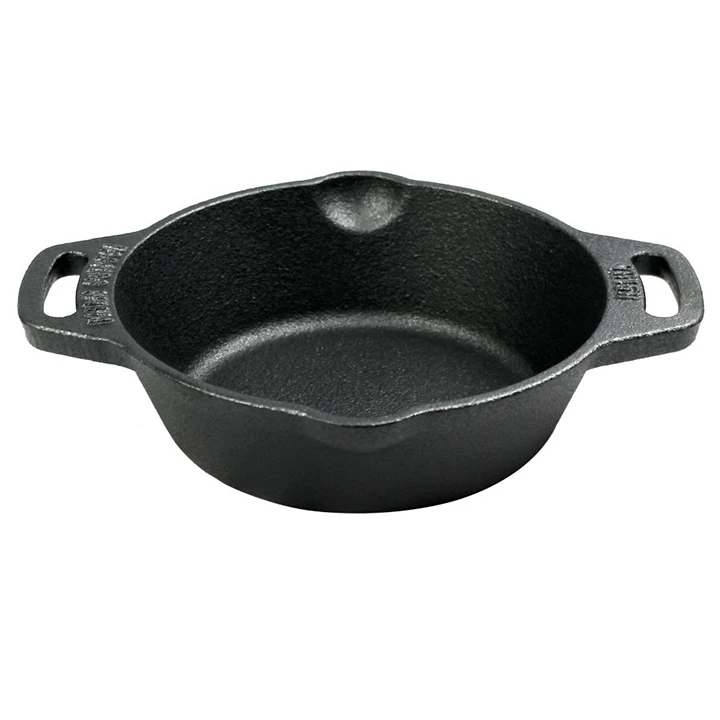 De VH15H skillet van Valhal Outdoor heeft een diameter van 15cm en heeft 2 handvatten. De skillet heeft ook aan beide zijdes schenktuiten om bijvoorbeeld sauzen makkelijk uit te kunnen schenken. Doordat de skillet in zijn geheel van gietijzer gemaakt is, is deze geschikt voor alle warmtebronnen. Je kan er dus mee koken op je fornuis binnen, maar net zo goed op de bbq, een kampvuur in je tuin of in de natuur. De skillet is door zijn geringe formaat ideaal om kleine gerechten in te maken en ook in te serveren.